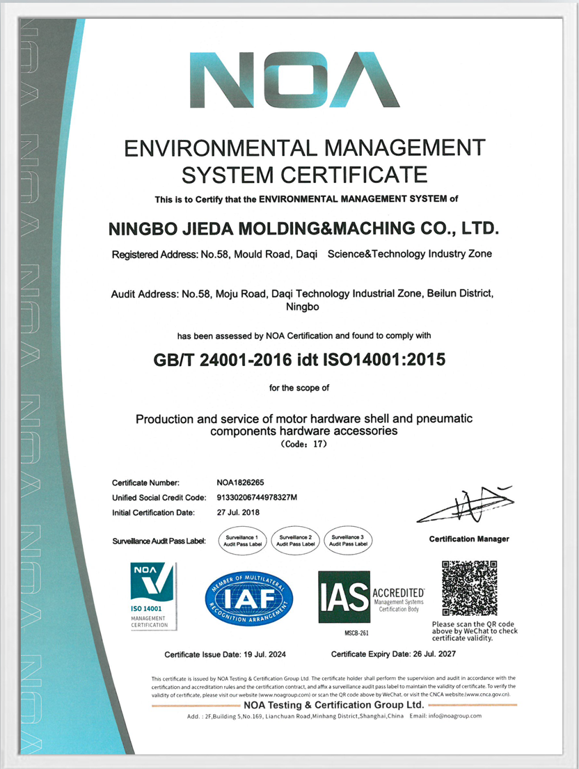 I moderne produksjon er die casting -teknologi, som en viktig metallformingsprosess, mye brukt på mange felt som biler, kommunikasjon, elektronikk og energi. Sink die støpeformer tilpasset høy presisjon har blitt det første valget for produksjon av mange høye presisjonsdeler på grunn av den utmerkede ytelsen. Ningbo Jieda Molding & Machine Co., Ltd., ettersom Kinas ledende sink die støpeformer tilpasset leverandør med høy presisjon, har vunnet høy anerkjennelse fra innenlandske og utenlandske kunder med sin utsøkte håndverk og avanserte teknologi.